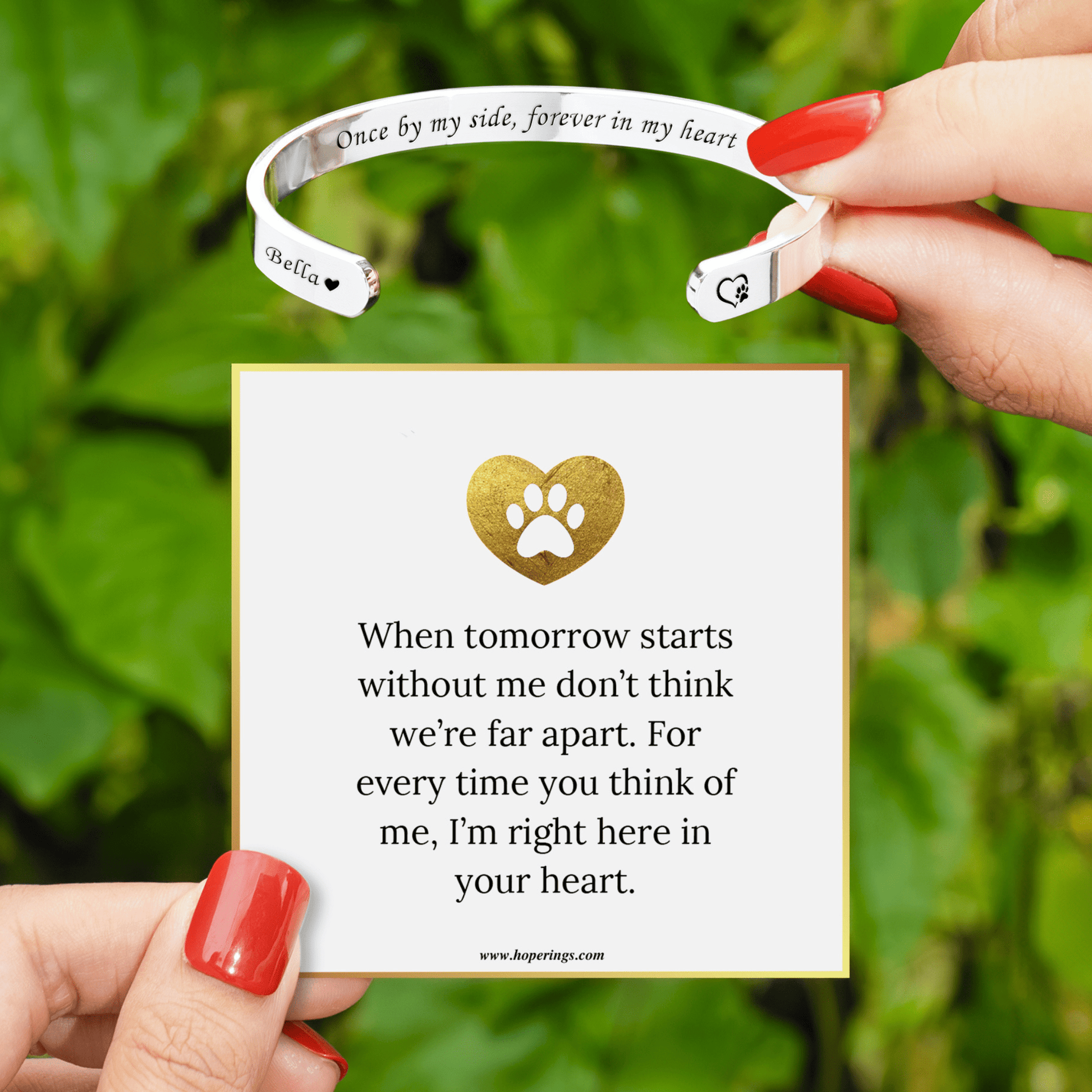 "I love how customizable this bracelet is. I was able to personalize it with my pet's name and a meaningful quote, making it truly unique. It's a beautiful way to remember my furry friend."