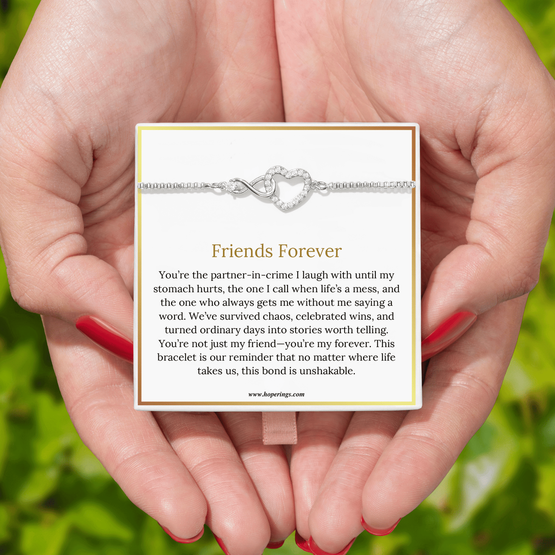 “I ADORE IT!!! The craftsmanship is impressive for the price. The heart and infinity design is subtle yet meaningful. I bought it to surprise my bestie, and she adored it. It’s a lovely reminder of our bond, and she wears it daily without any issues.“