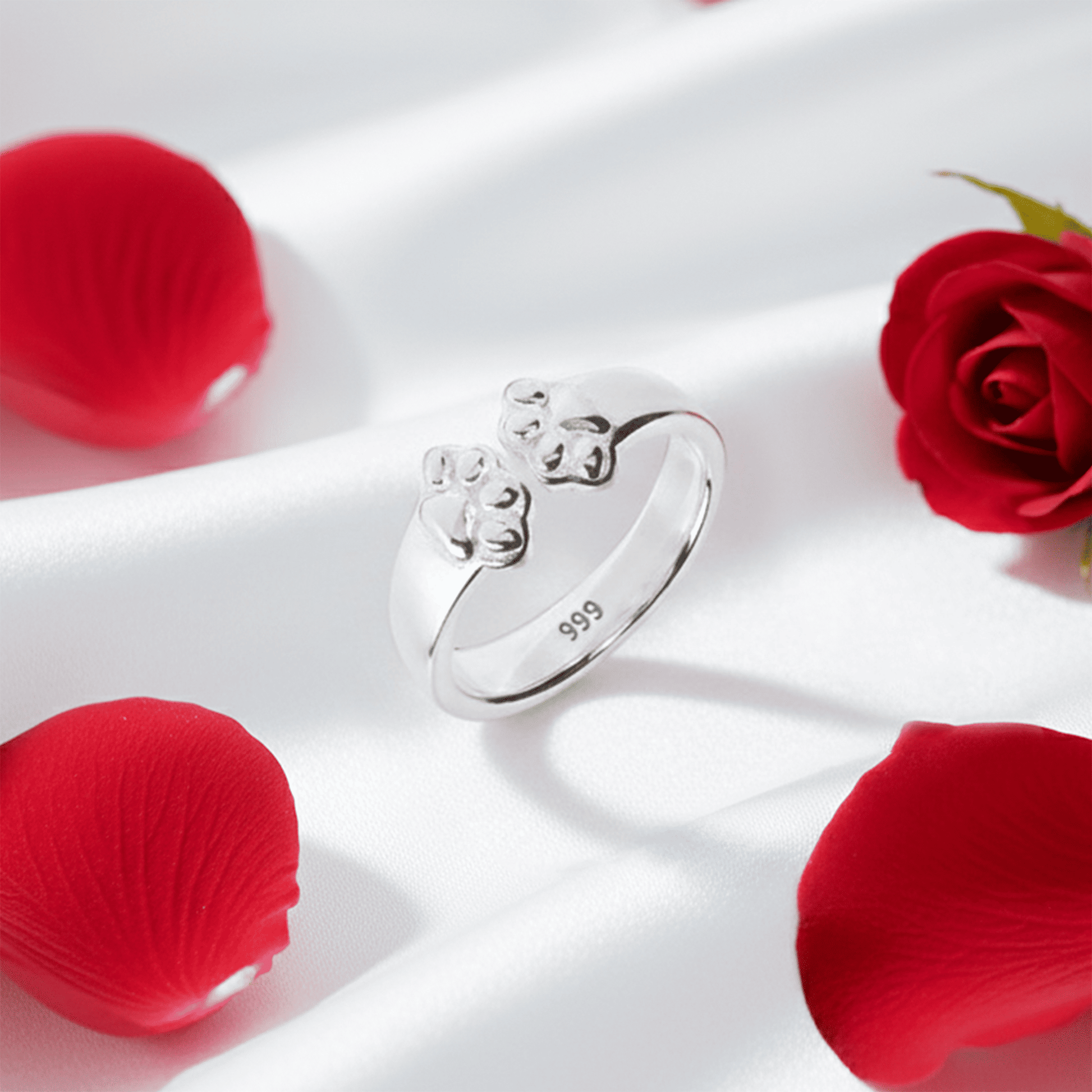 “I adore my paw ring it makes me feel closer to my beloved Buddy who was 16yrs old golden retriever he was my world I feel he's with me all the time I've just purchased another paws ring from you for my sister she just lost her Cherrie on Saturday 9/12/2023 to cancer to she was 9yrs old 💔“