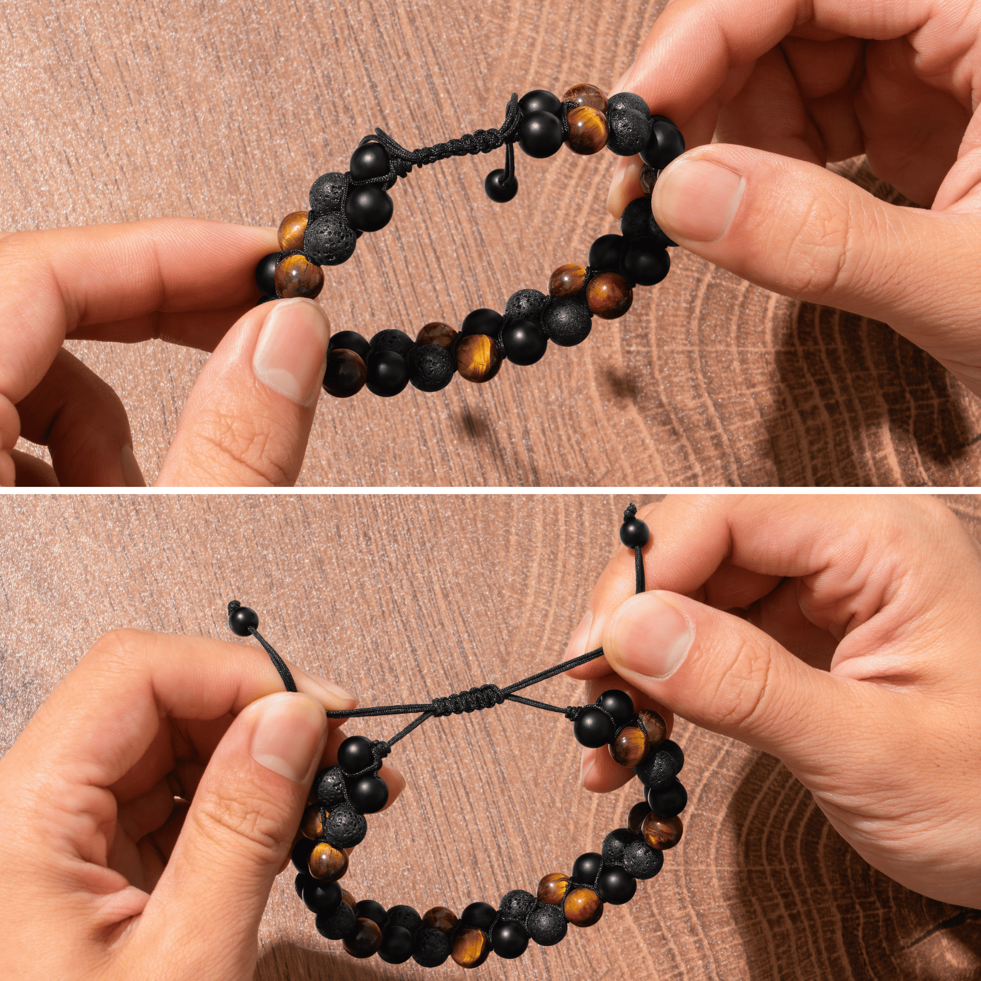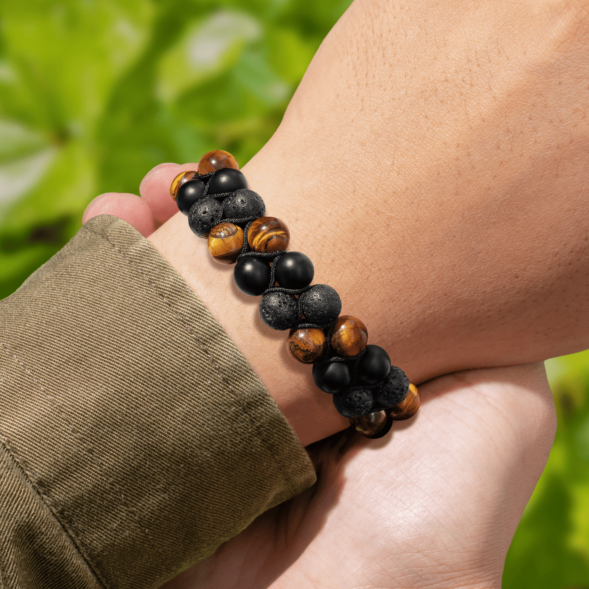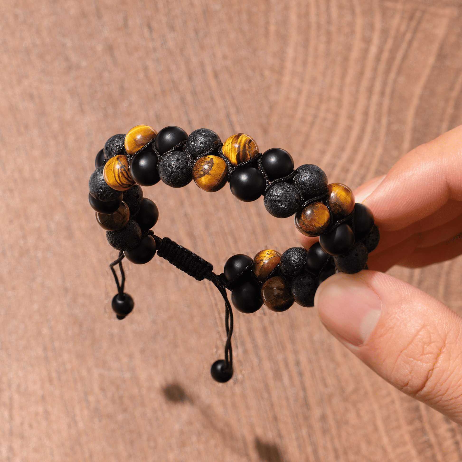 While some natural stones may show slight changes over time, our jewelry is carefully crafted with Tiger Eye Stone, Frosted Stone, and Volcanic Stone—materials known for their strength and durability. These stones are resistant to everyday wear, and their natural textures help mask minor marks, keeping them looking timeless with very little care.